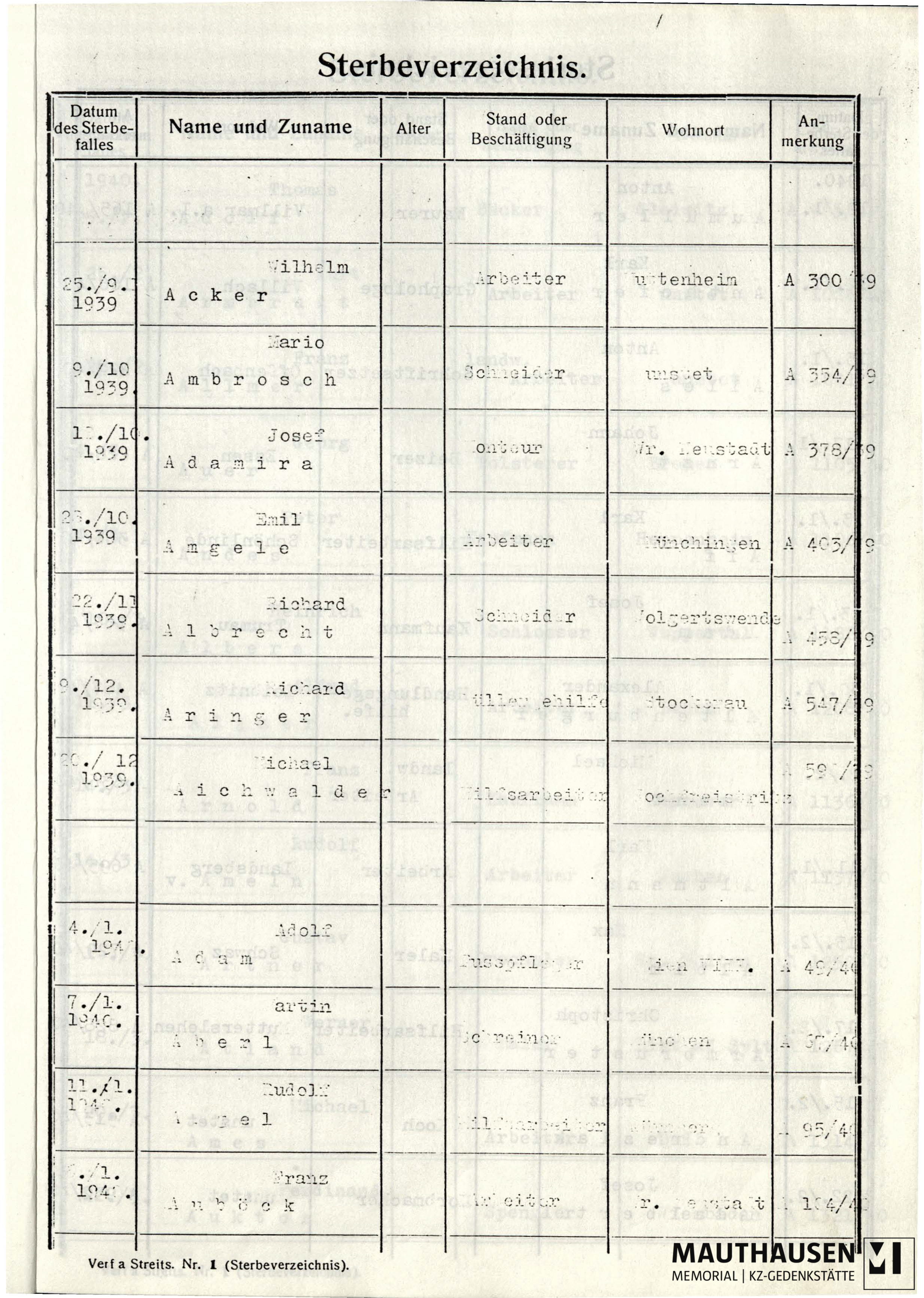 TitleTotenlisten Konzentrationslager Mauthausen 1939-1940, Band 1