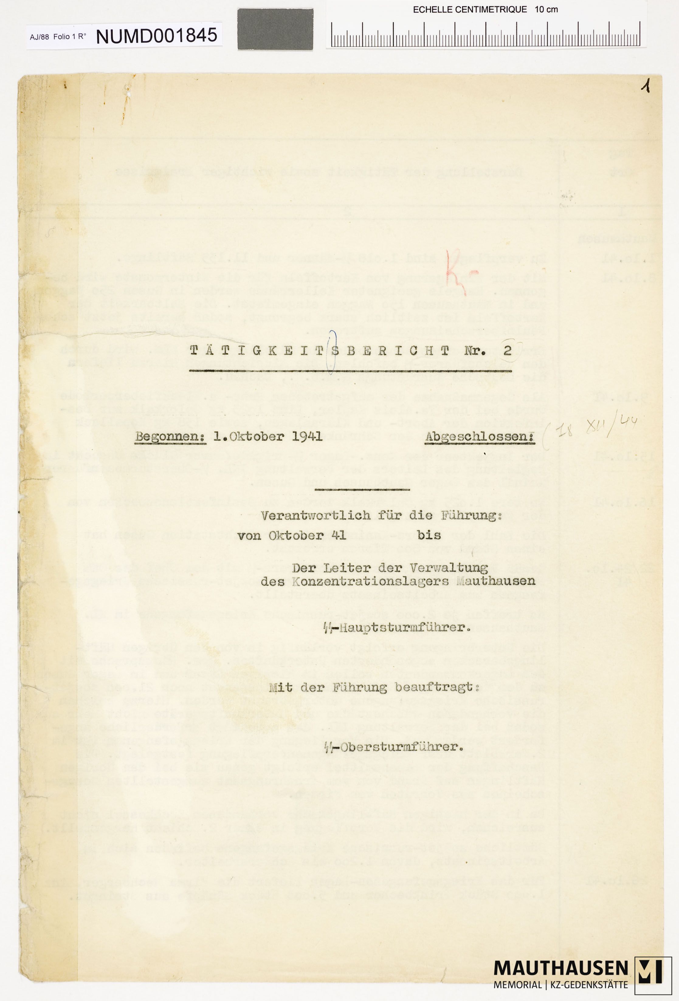 TitleTätigkeitsbericht des Leiters der Verwaltung des KZ Mauthausen, Nr. 2