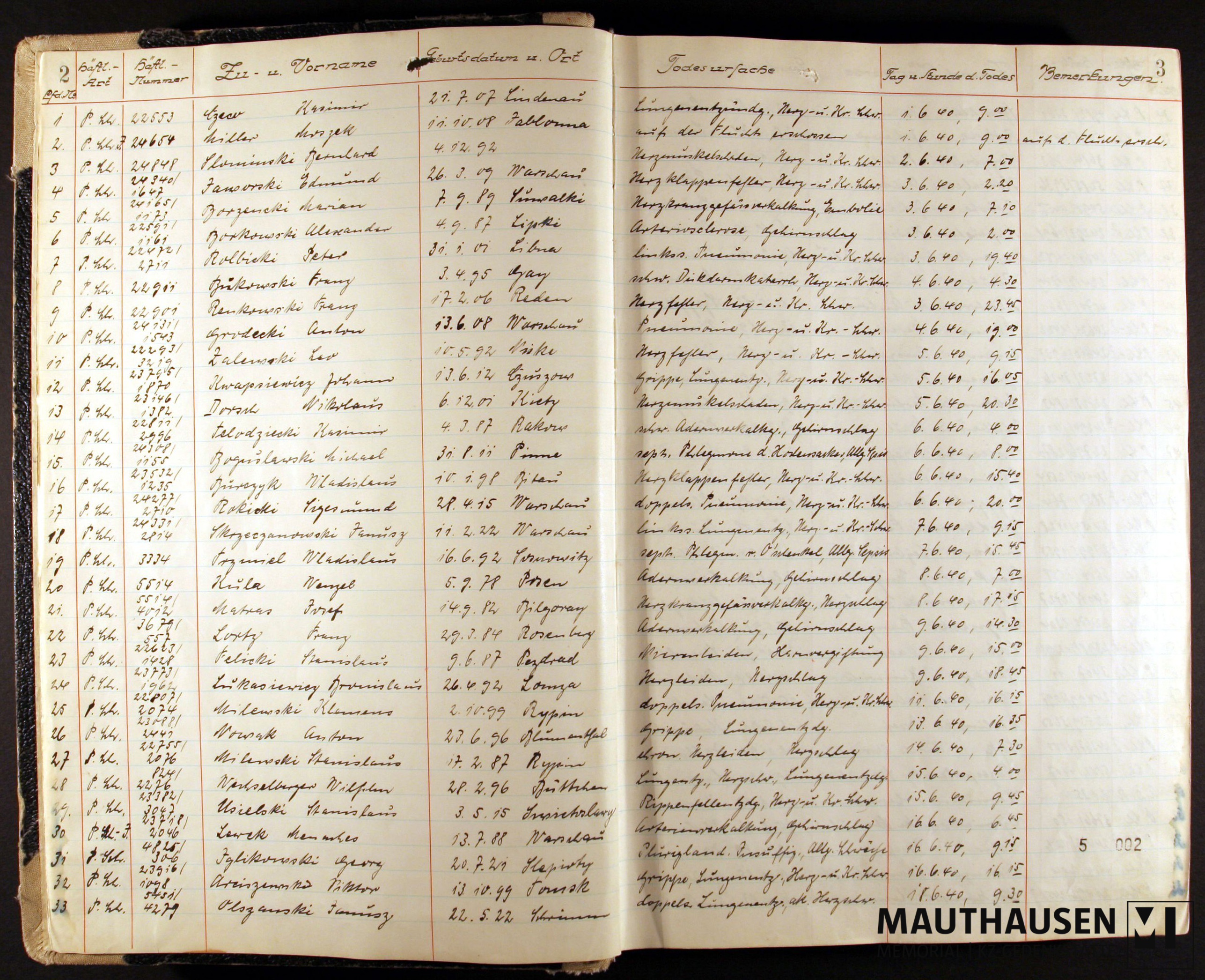 Content descriptionTotenbücher des SS-Standortarztes Mauthausen für das KZ Gusen ("Totenbuch Gusen"), bestehend aus vier Bänden über den Zeitraum von 1. Juni 1940 bis 25. April 1945. Die Namen der im "Totenbuch Gusen" aufgelisteten Personen wurde in der Häftlingsdatenbank der KZ-Gedenkstätte Mauthausen erfasst.