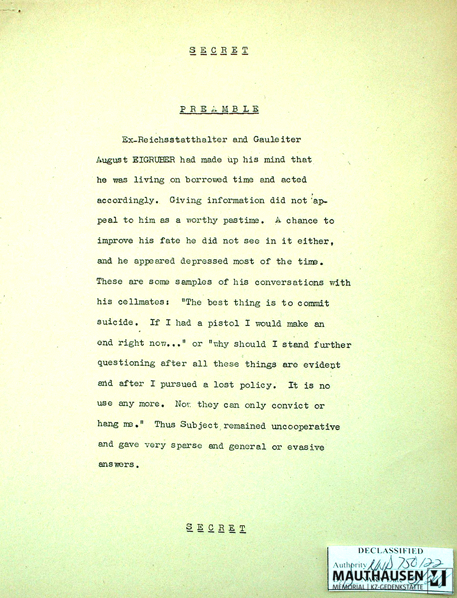 US-Geheimdienstbericht über die erste Einvernahme von Gauleiter August Eigruber