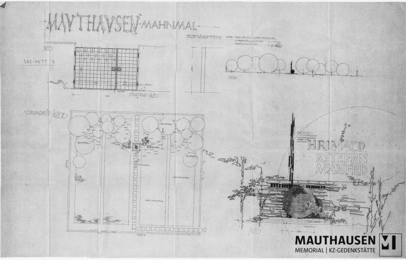 Planskizze für die Gestaltung des Quarantänehofes/Friedhofes in der KZ-Gedenkstätte Mauthausen. Mauthausen Mahnmal. Variante 3.