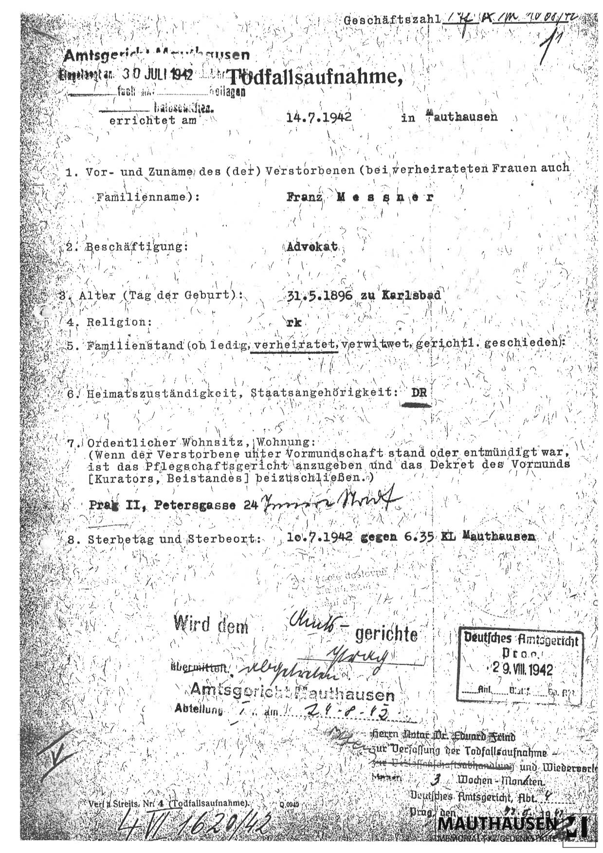Dokumentensammlung zu Franz Messner (1896-1942)