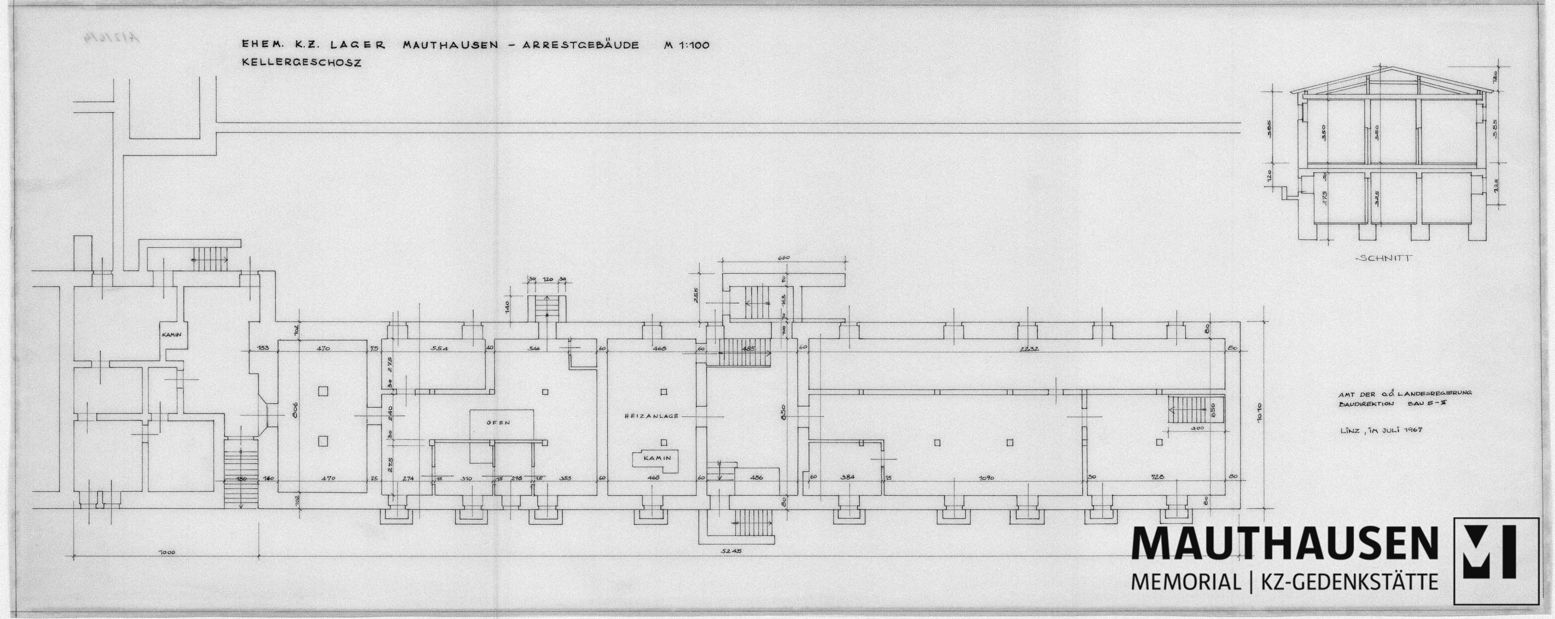 TitleNachkriegszeitlicher Plan des Kellergeschosses des Lagergefängnisses im KZ Mauthausen; Grundriss