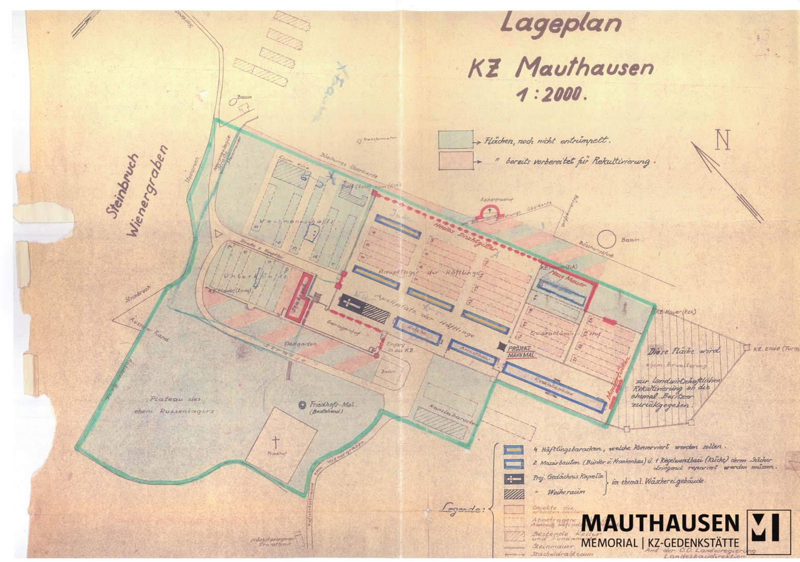 Content descriptionLageplan des KZ Mauthausen mit Legende und Einzeichnung des übergebenen Lagerbereichs.
