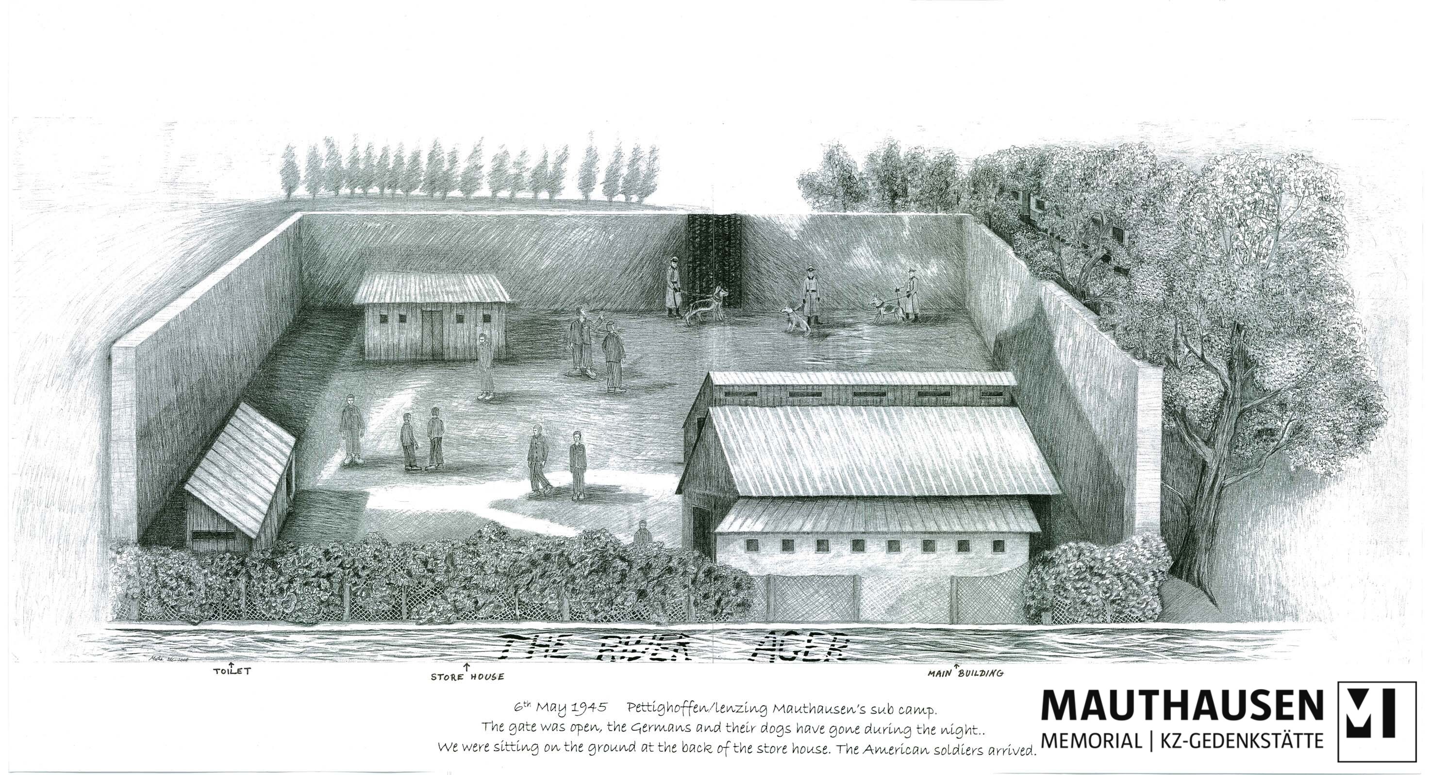 Zeichnung des Außenlagers Lenzing von Clare Parker