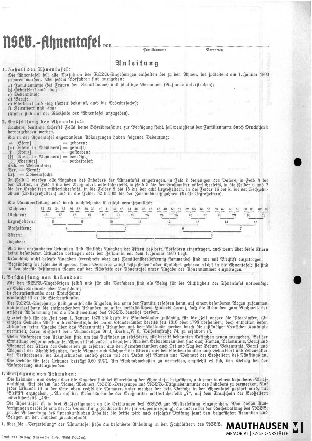 Formulare zur Erforschung der Ahnen, (NSLB) Nationalsozialistischer Lehrerbund