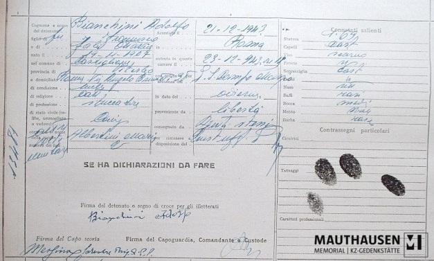 Personalkarte von Bianchini Adolfo aus dem Gefängnis in Rom.