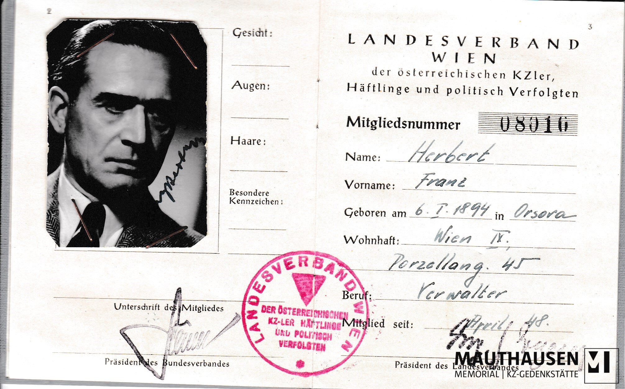 Dokumente über Franz Herbert, ehem. Häftling des KZ Mauthausen (130083).
