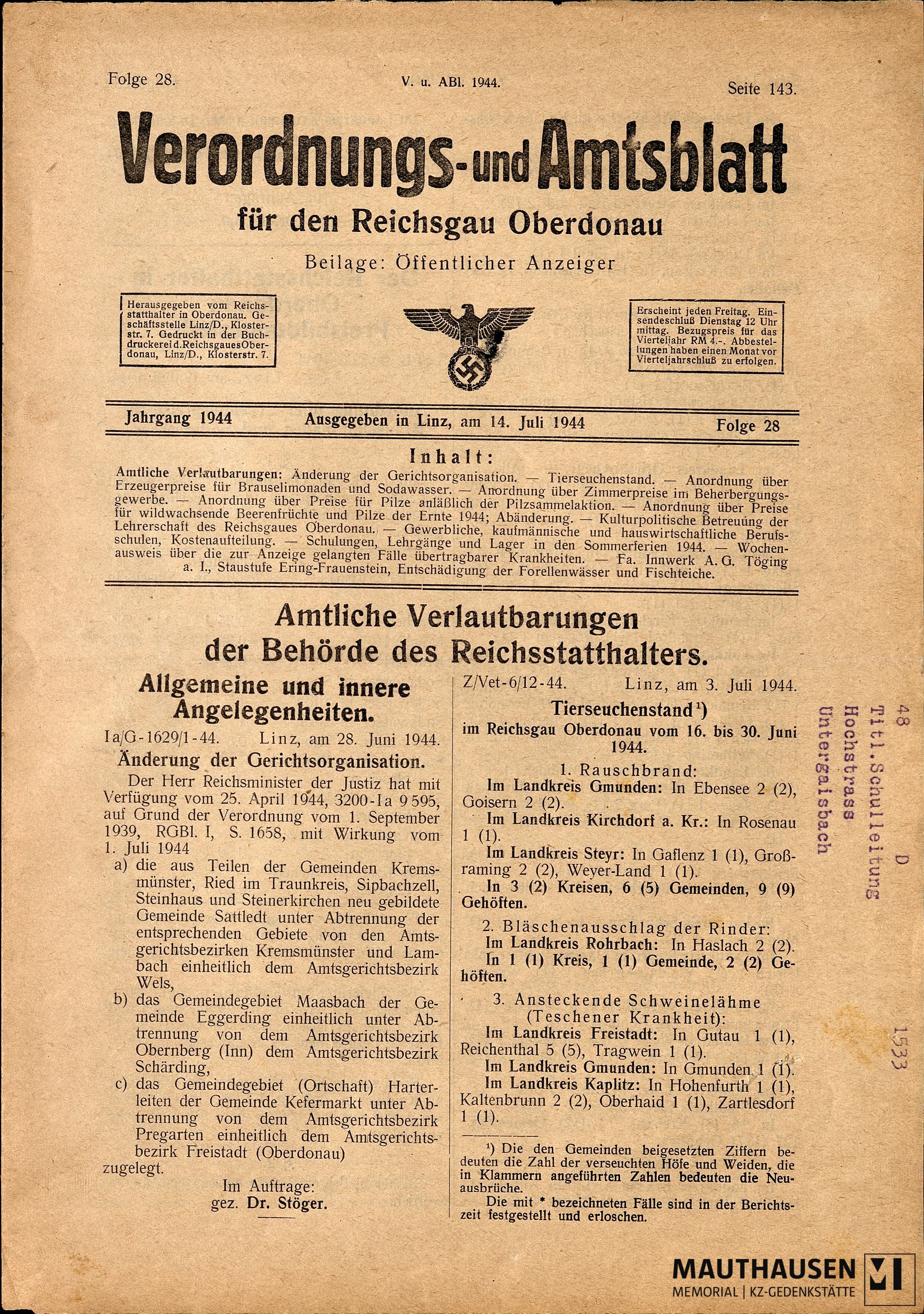 Verordnungs- und Amtsblatt für den Reichsgau Oberdonau