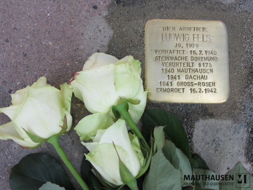 Content descriptionStolpersteinlegung in Gedenken an Ludwig Fels, geb. 1909, inhaftiert wegen §175, 1940 in Mauthausen, danach Dachau und Gross-Rosen, ermordet am 16.2.1942; Biografie, Stolpersteine