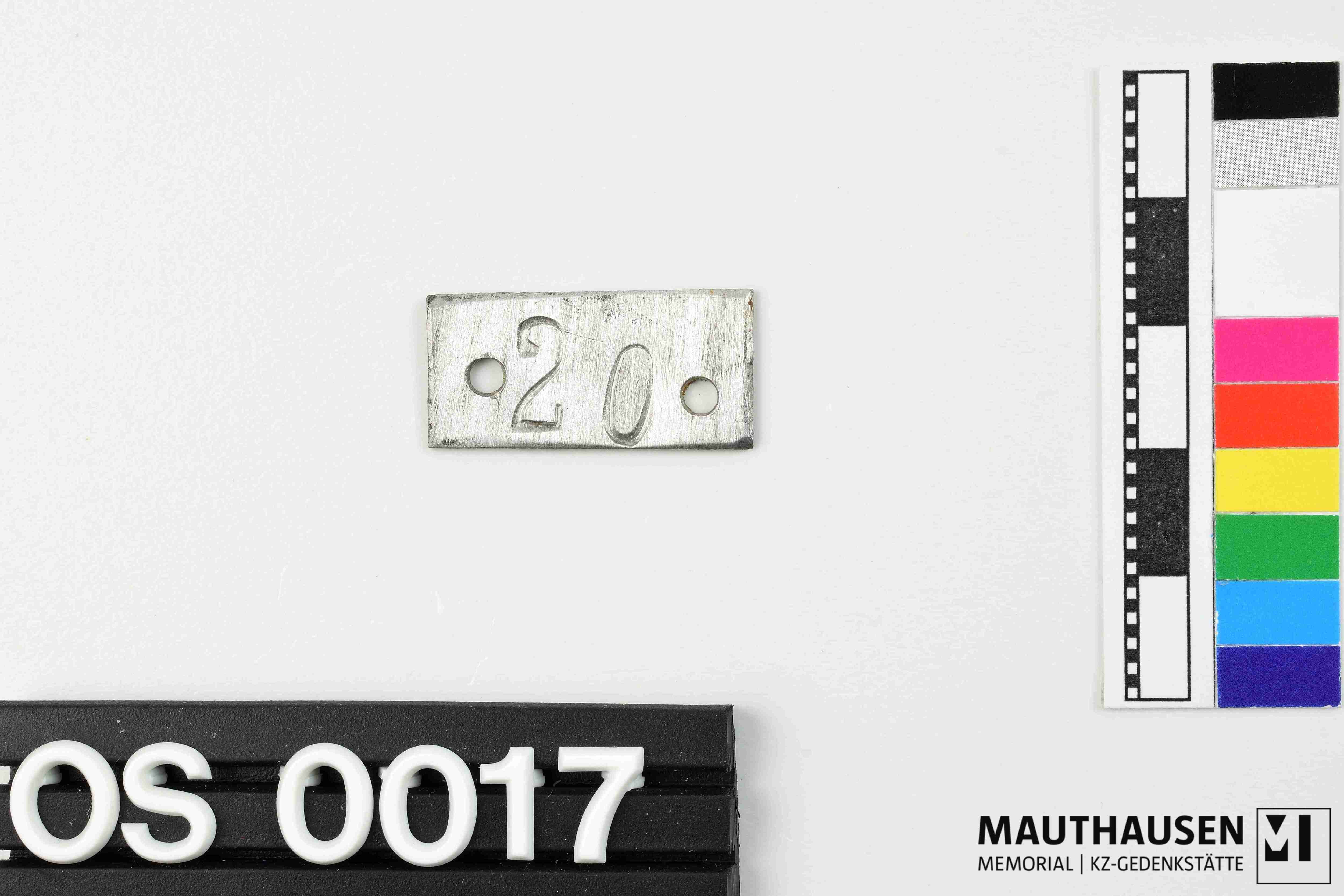 mit der Nummer 20 gestanzt. Rechteckiger Korpus. 2 kreisrunde Ausnehmungen. guter Zustand. Kratzspuren an gesamten Korpusoberfläche. Veränderungen der Korpusoberfläche.
