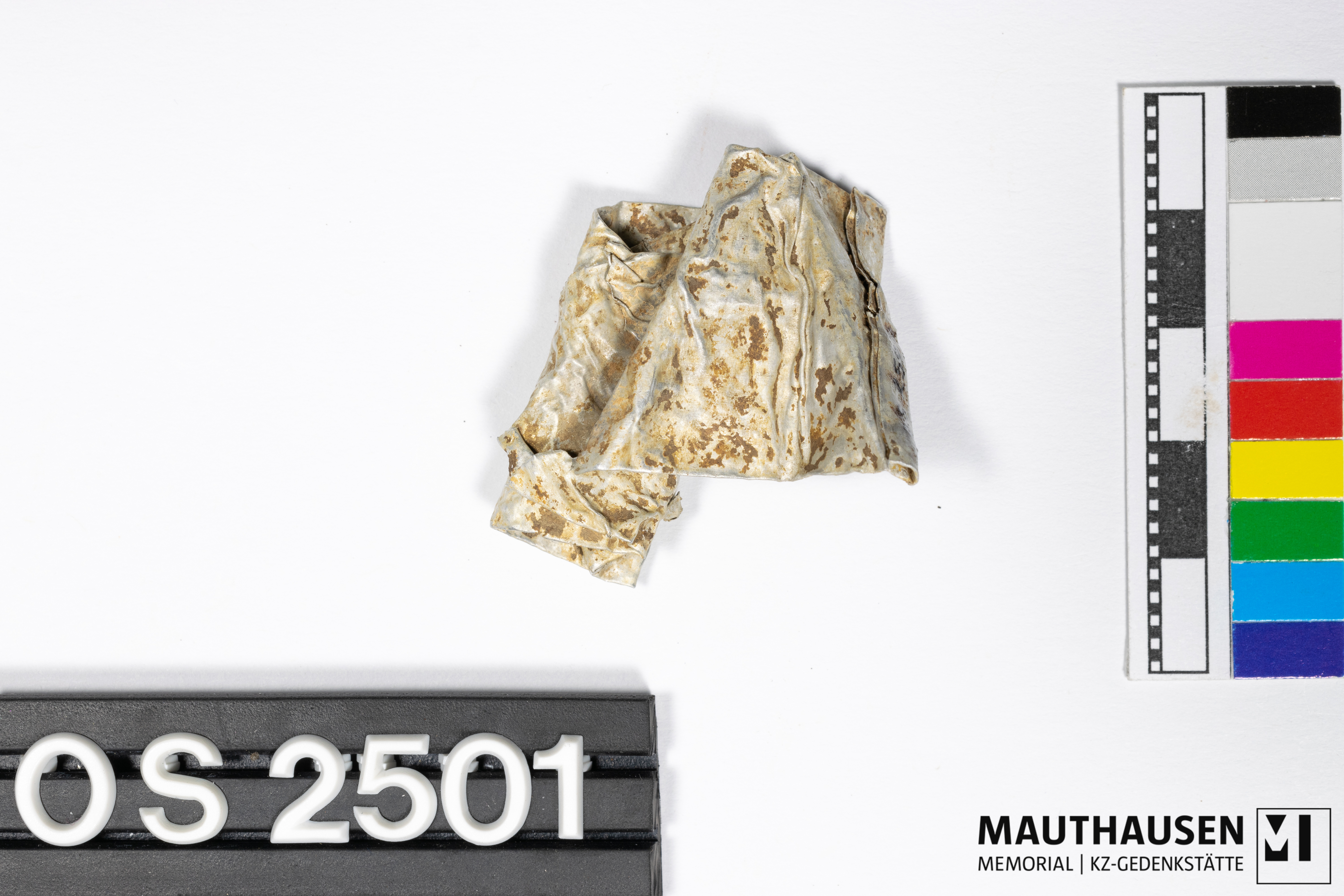 DescriptionTube; fragmentarisch erhalten; deformiert, zusammengedrückt/gerollt; Beschriftung auf Tubenfalz: "ODI"(?), nicht eindeutig lesbar