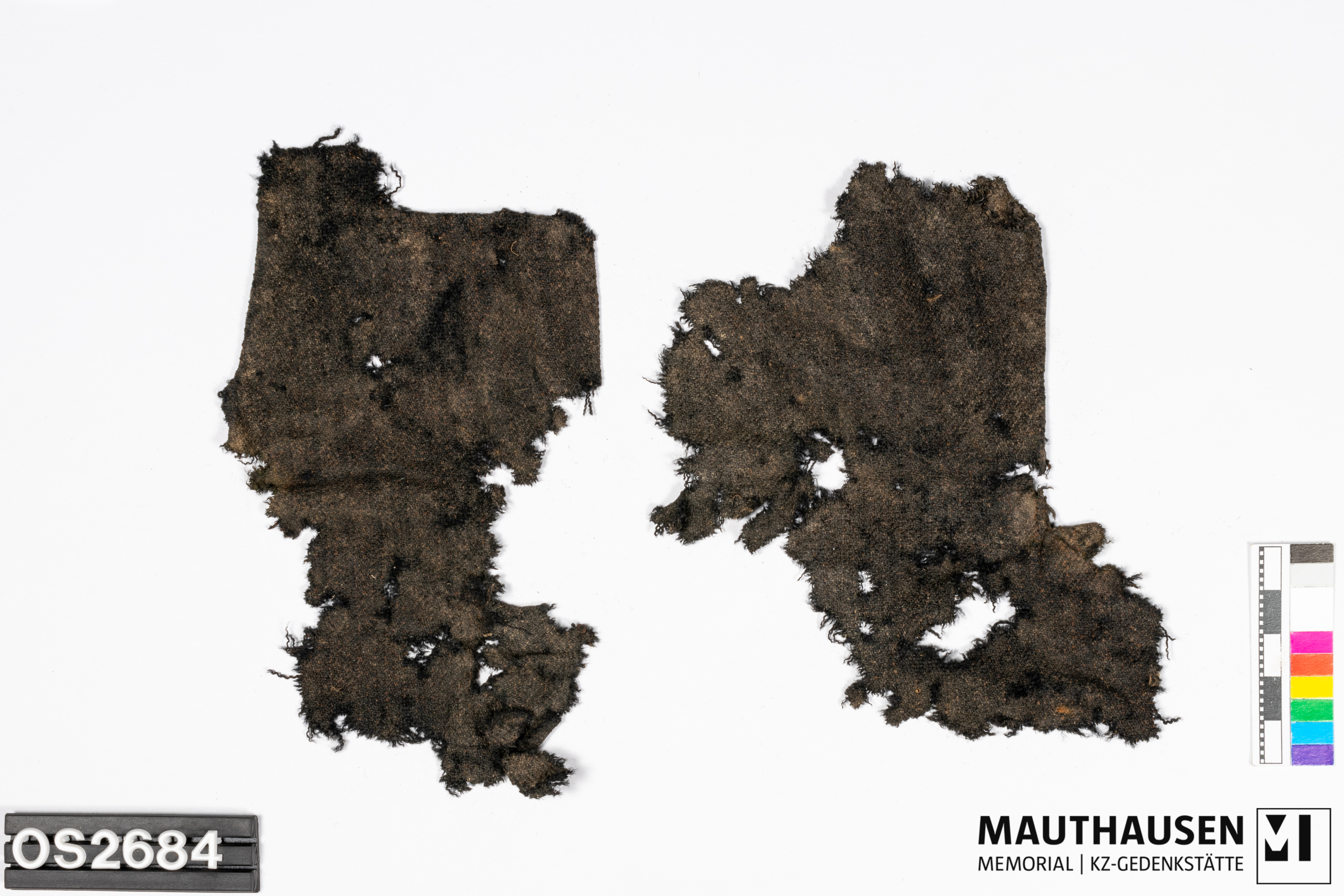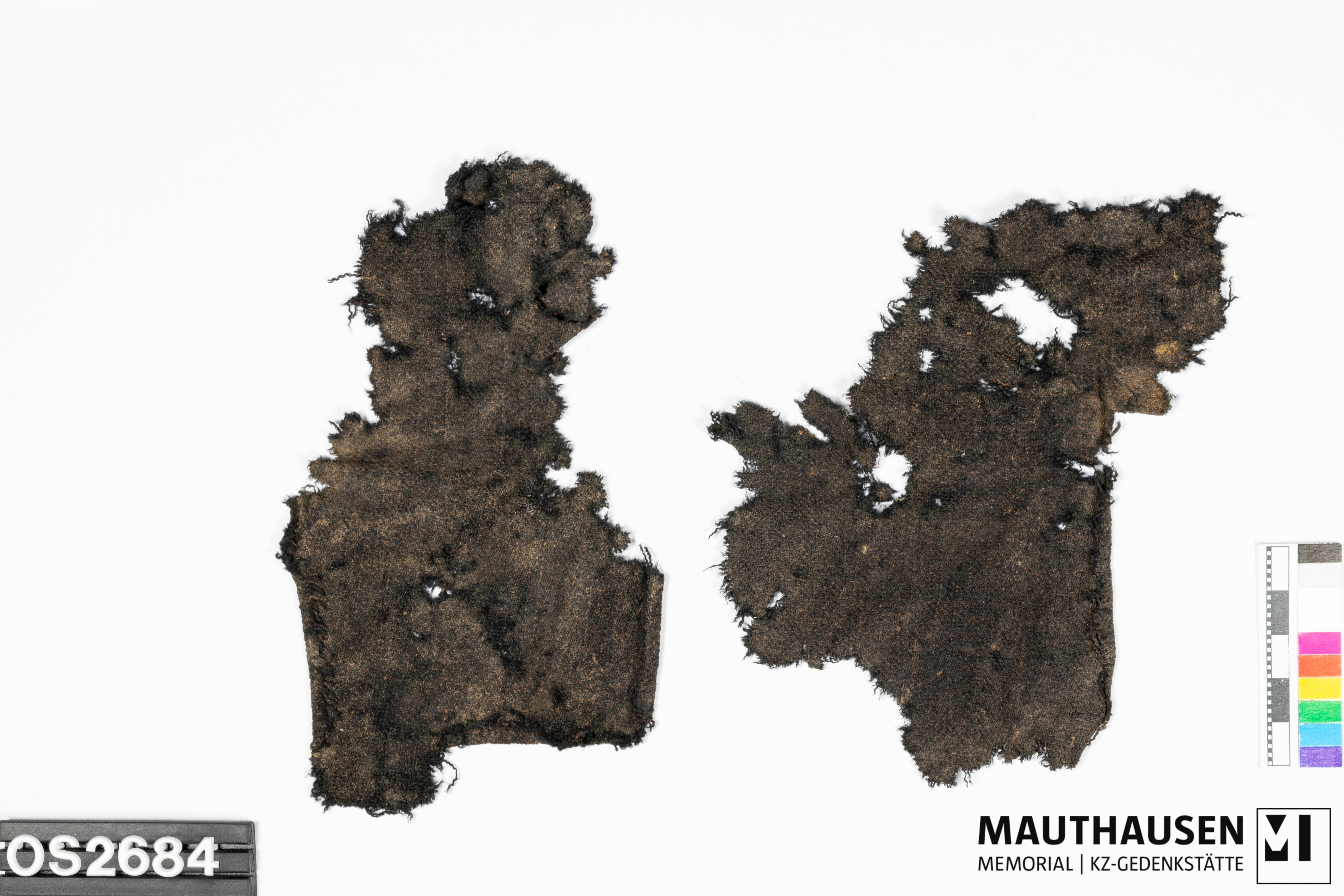 DescriptionTextil; 2 Fragmente; Teilung OS-Nr. in a und b; OS2684a: Oberstoff; Wolle; Bindung: Köper; Nahtspuren; Teil des Randes umgebogen; Kette zweifärbig; Farbe hellbraun und dunkelbraun-schwarz; OS2684b: Oberstoff; Wolle; Bindung: Köper; Nahtspuren; Teil des Randes umgebogen; Kette zweifärbig; Farbe hellbraun bis dunkelbraun-schwarz