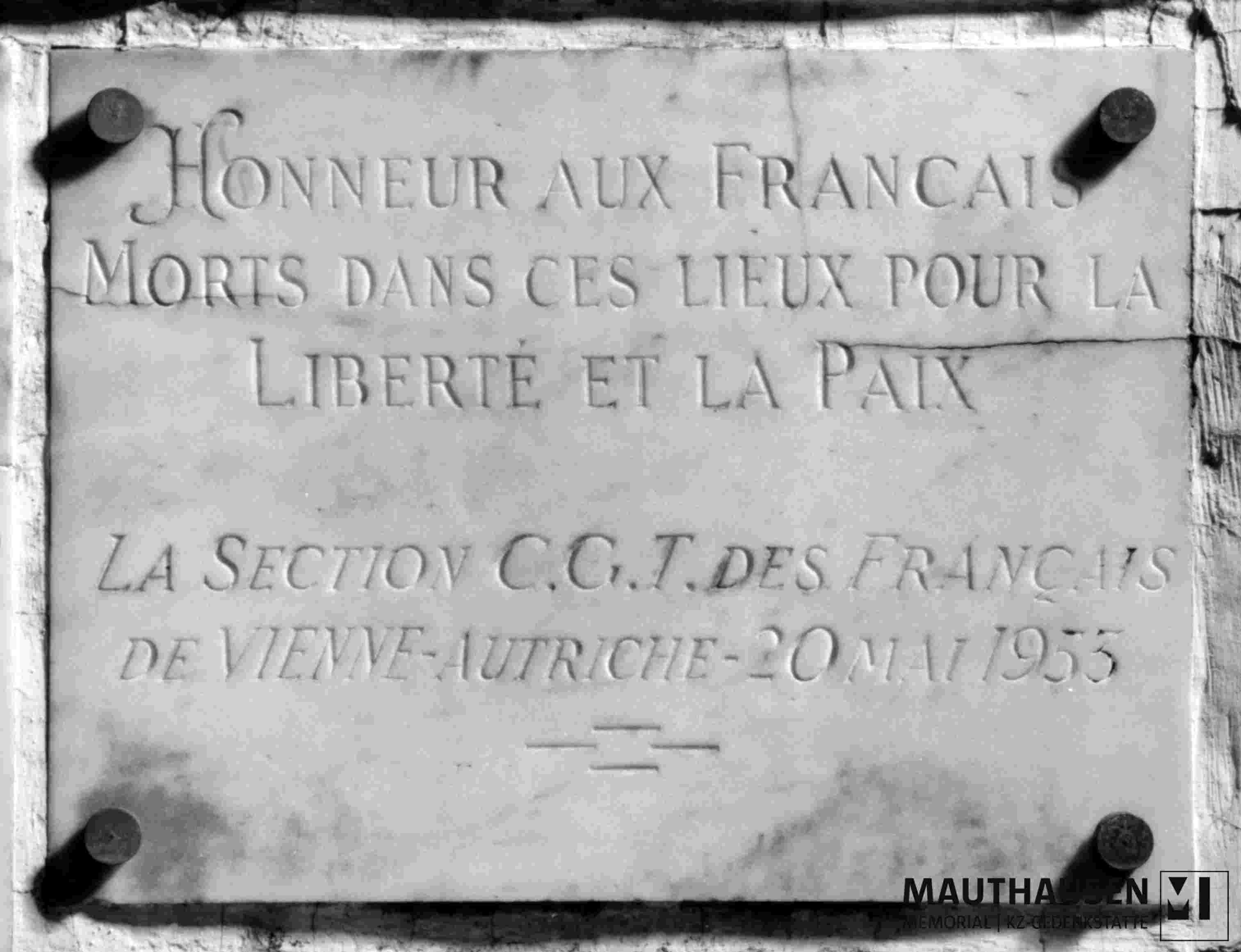 Titlekollektive Gedenktafel des C.G.T. (Allgemeiner Gewerkschaftsbund), Sektion Wien, für die ermordeten Franzosen