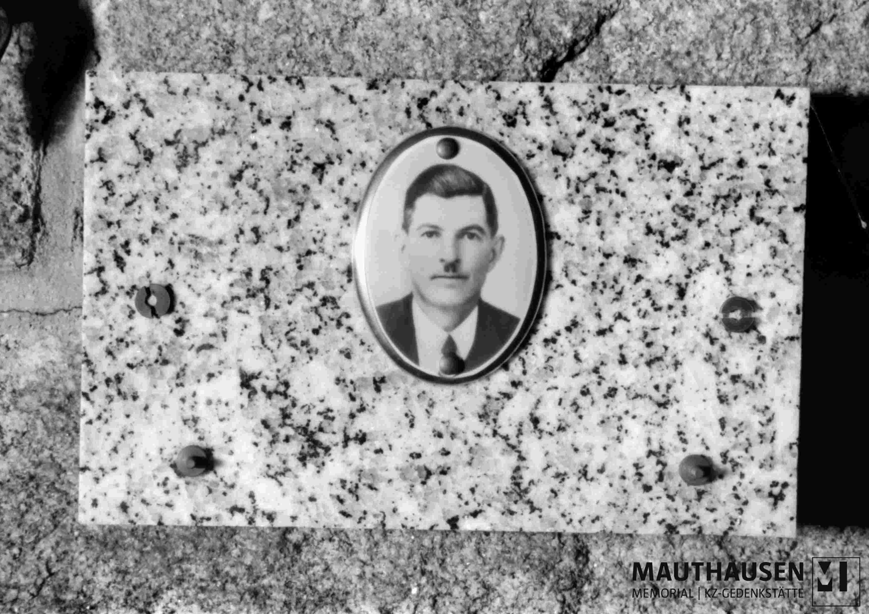 TitleGedenktafel mit Fotomedaillon / Porträtfoto einer unbekannten Person