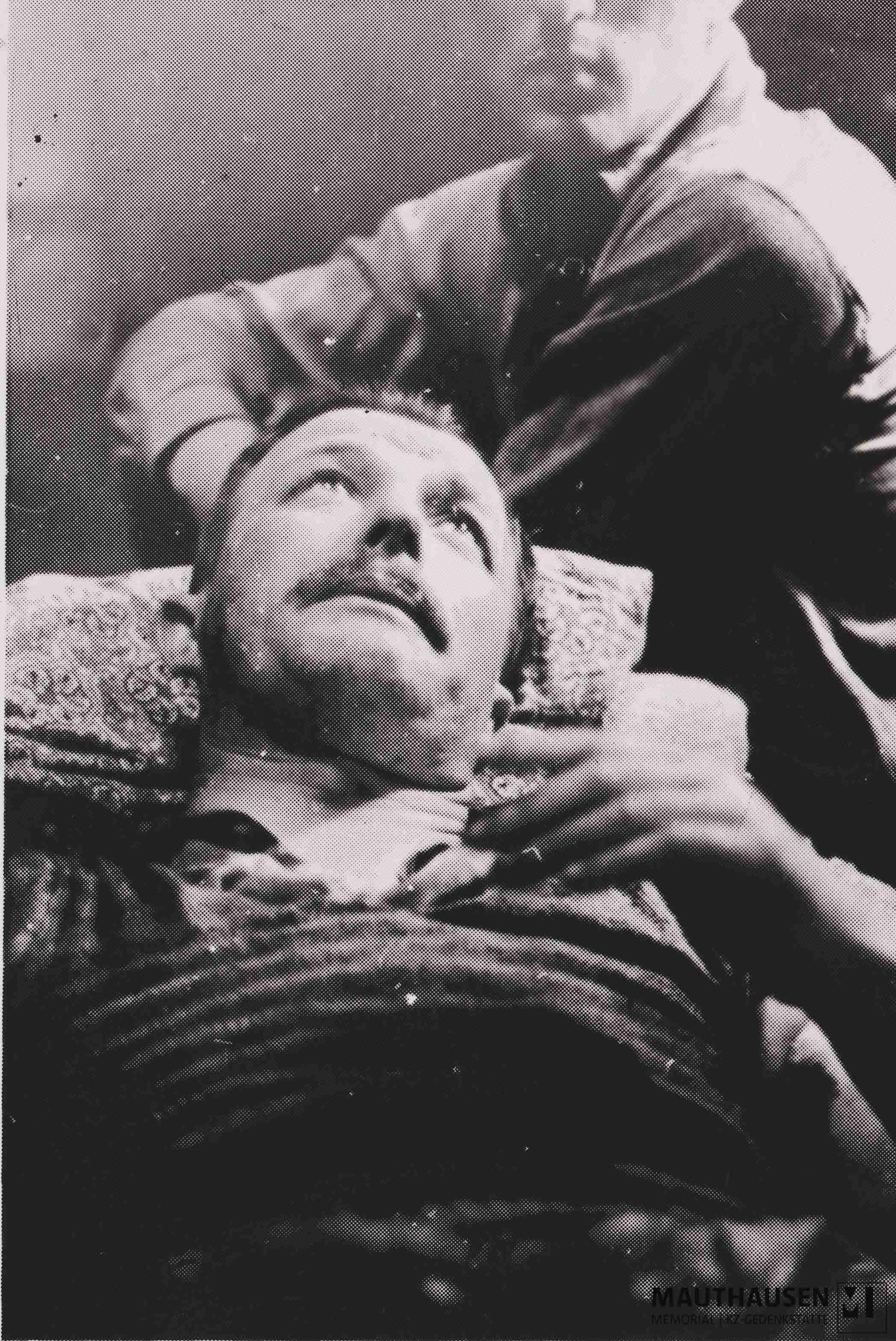 BeschreibungLagerkommandant Ziereis, nach der Befreiung bei seiner Einvernahme in einem amerikanischen Hospital in Gusen (Ziereis war bei seiner Festnahme angeschossen worden); siehe auch Z/1/106